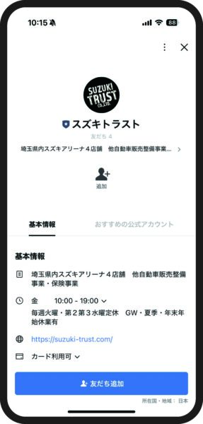 この機会に是非、スズキトラストのLINE公式アカウントをご利用ください。