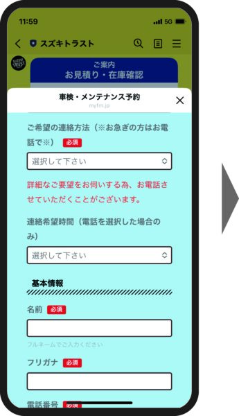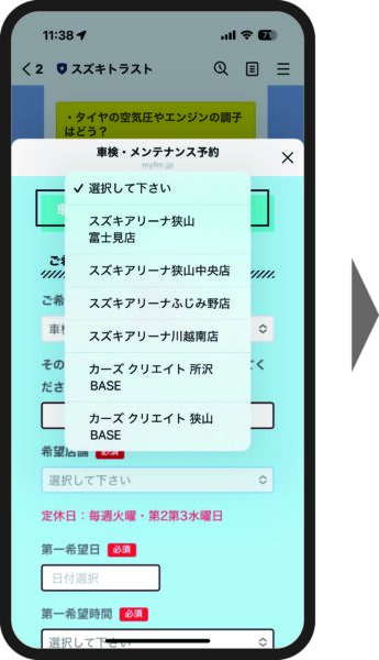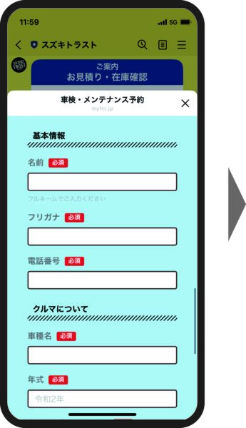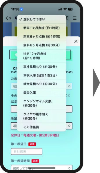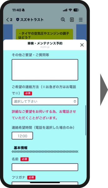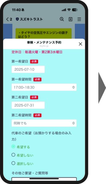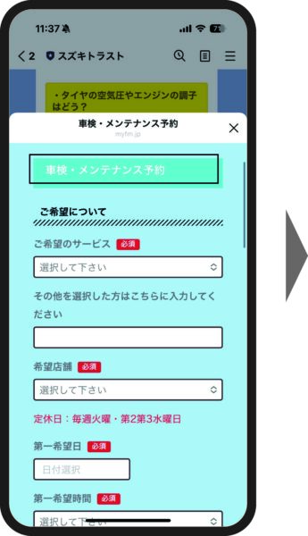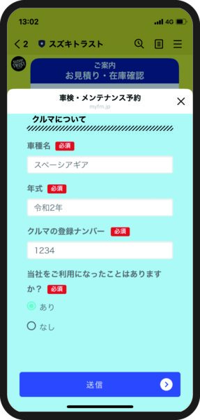 ②「車検点検・メンテナンス予約」フォームが開きます