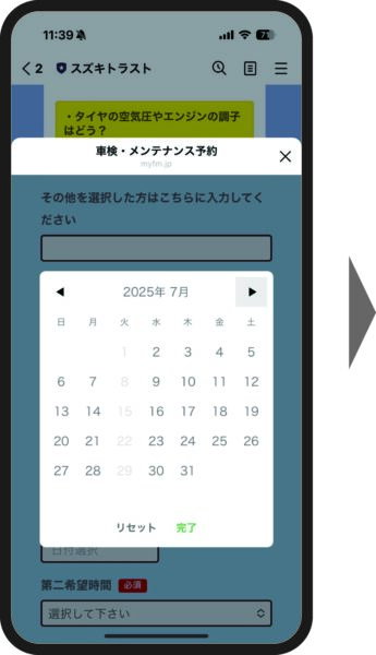 ⑤ご希望の入庫日を「第一希望日」をタップして選んでください